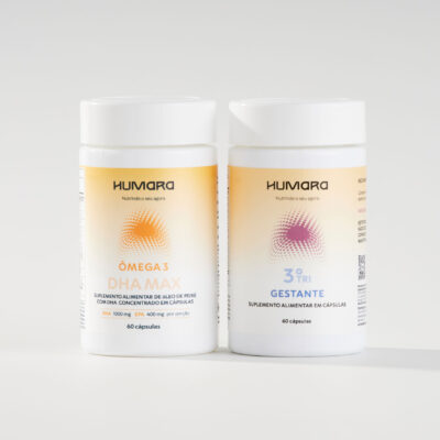 A Humara criou o primeiro multivitamínico do Brasil com fórmulas que evoluem a cada fase da gestação. Essa divisão respeita a fisiologia em constante mudança. No 1º trimestre, apoia a formação do tubo neural e da placenta; no 2º, o crescimento fetal acelerado e a formação óssea; no 3º, a maturação cerebral, reservas de ferro e preparo para o parto. Uma suplementação inteligente e alinhada às reais necessidades da mãe e do bebê.